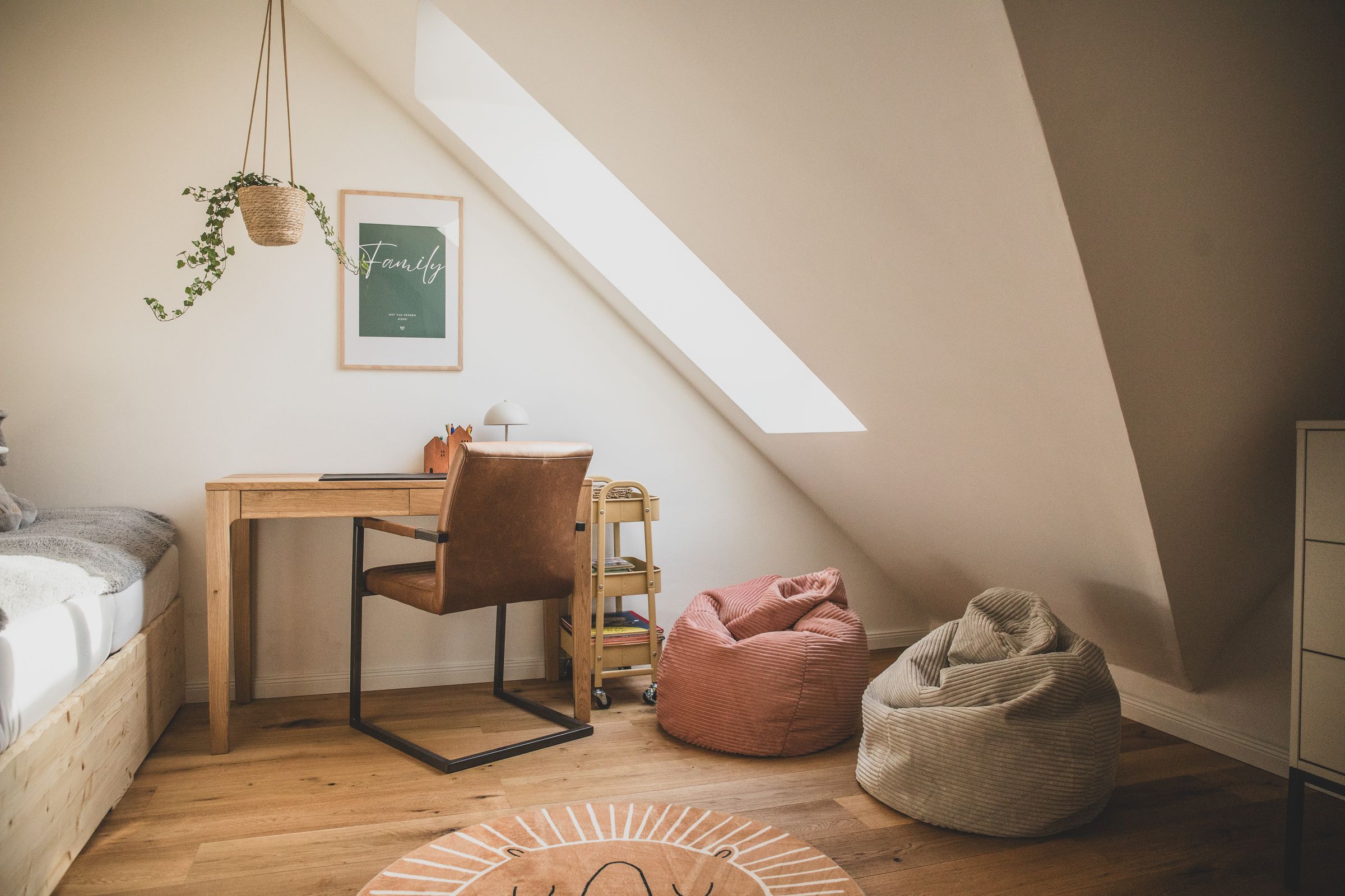 Im zweiten Schlafzimmer erwartet euch eine gemütliche Kuschelnische (1,60 m breit), die eine ganz eigene Geborgenheit ausstrahlt – beliebt bei Kindern ebenso wie bei Erwachsenen. Außerdem findet ihr hier einen praktischen Schreibtisch, der eine komfortable Homeoffice-Möglichkeit bietet.