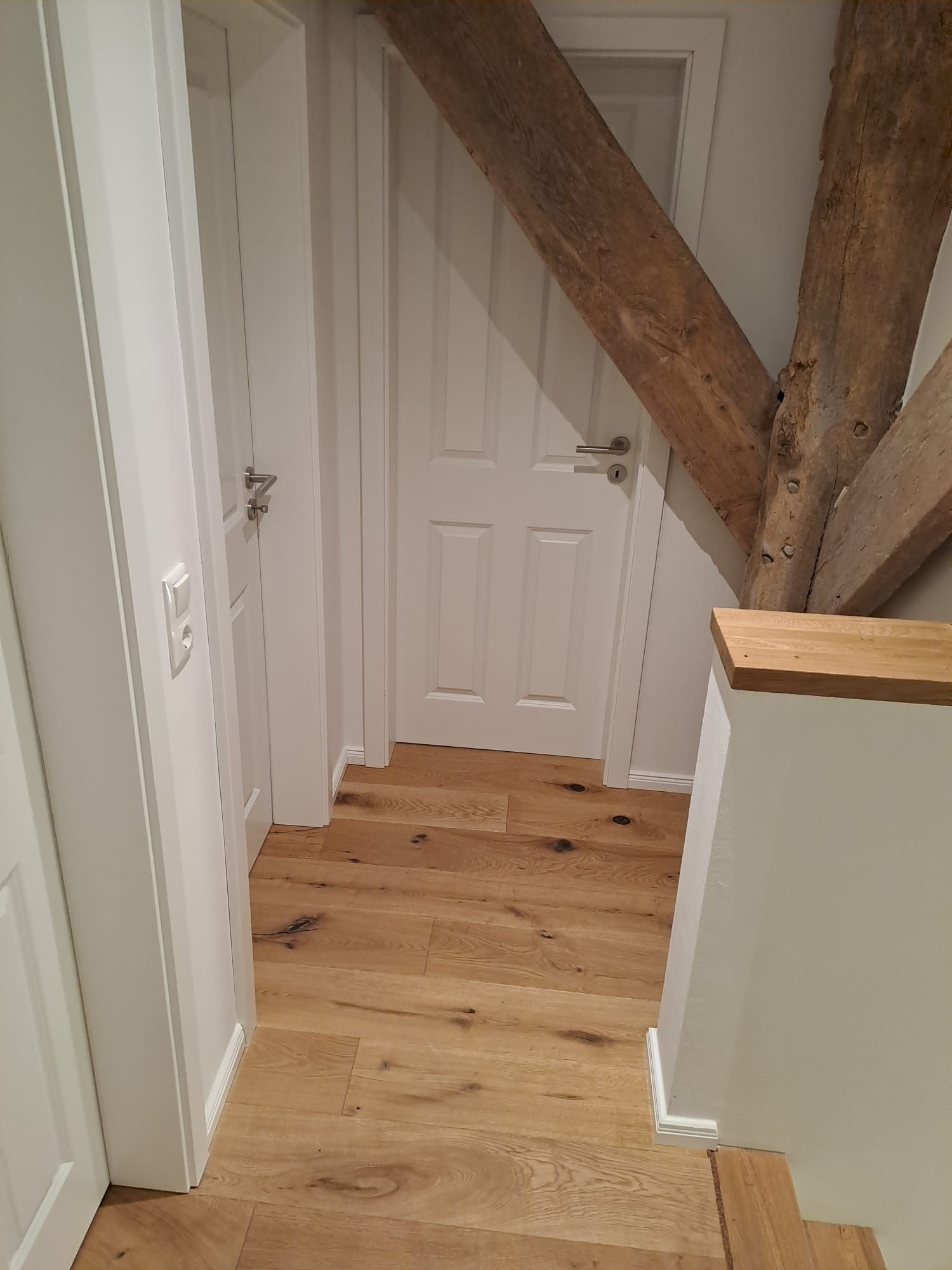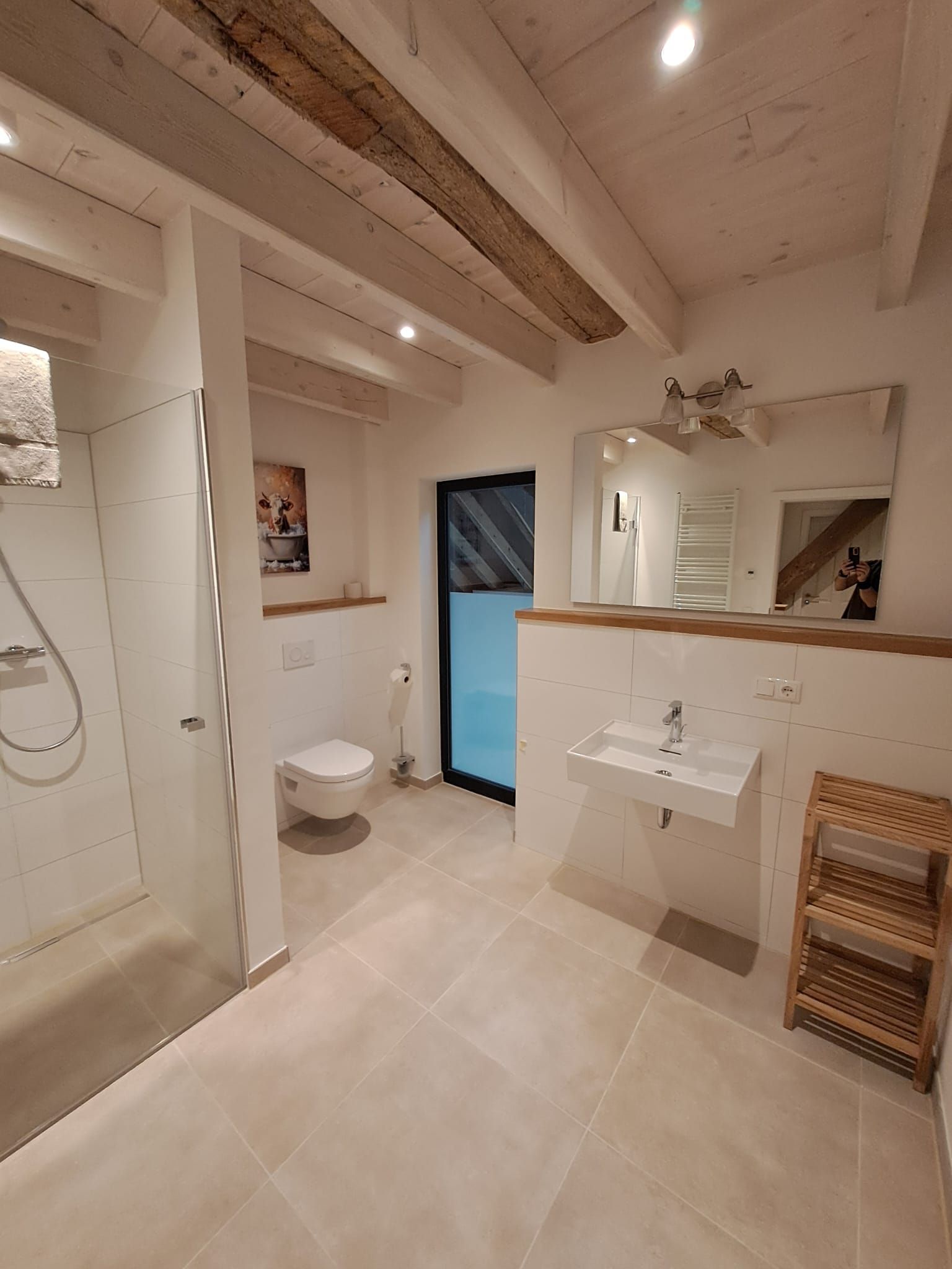 Die Unterkunft verfügt über insgesamt vier Zimmer, davon drei separate Schlafzimmer – ideal für Familien oder kleine Gruppen, die Wert auf Rückzugsmöglichkeiten legen. Für einen erholsamen Aufenthalt sorgt neben der modernen Zentralheizung eine angenehme Fußbodenheizung, und Parkettboden in Wohn- und Schlafzimmern schafft ein behagliches Wohnklima. Darüber hinaus steht ein Gäste-WC zusätzlich zum modernen Badezimmer mit bodengleicher Dusche zur Verfügung.