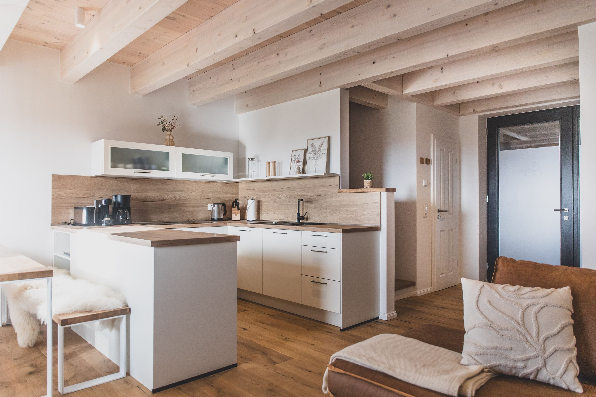 Ca. 78 m² auf zwei Ebenen, Platz für 4 Personen. Die Ausstattung ist hochwertig und liebevoll durchdacht, zwei gemütliche Schlafzimmer, eine komplett ausgestattete Küche, ein einladender Wohnbereich sowie ein Bad mit Sauna – ideal für entspannte Tage und gemütliche Abende. Familien sind herzlich willkommen.