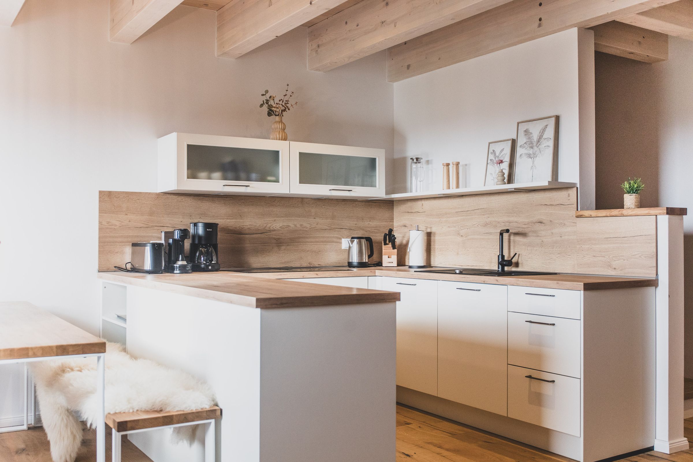 Voll ausgestattete Küche (Induktionsherd, Mikrowelle, Nespresso)